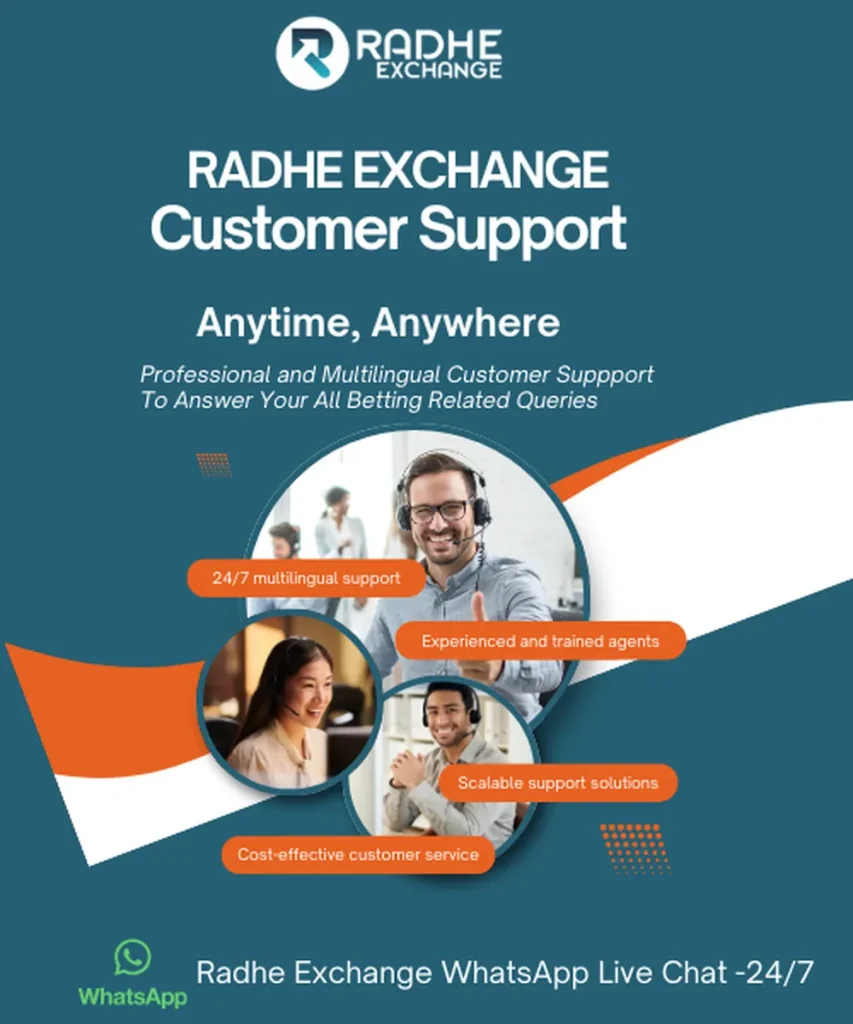 Radhe Exchange customer support system is a 24/7 real-time assistance to resolve registration, verification, and transaction issues without delay. The dedicated support team responds to user queries in under 2 minutes via WhatsApp live chat, within 5 minutes through email support, and provides instant phone assistance for urgent concerns. This multi-channel support structure ensures uninterrupted help during betting account creation, login troubleshooting, deposit processing, withdrawal requests, and live betting placement.